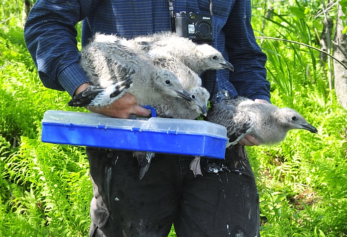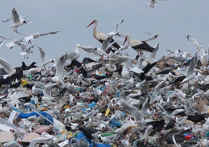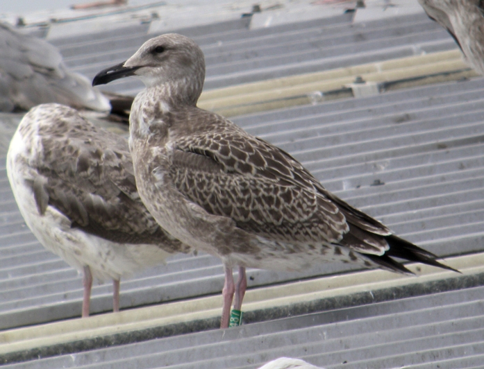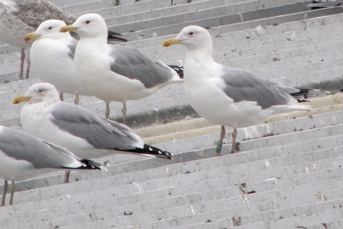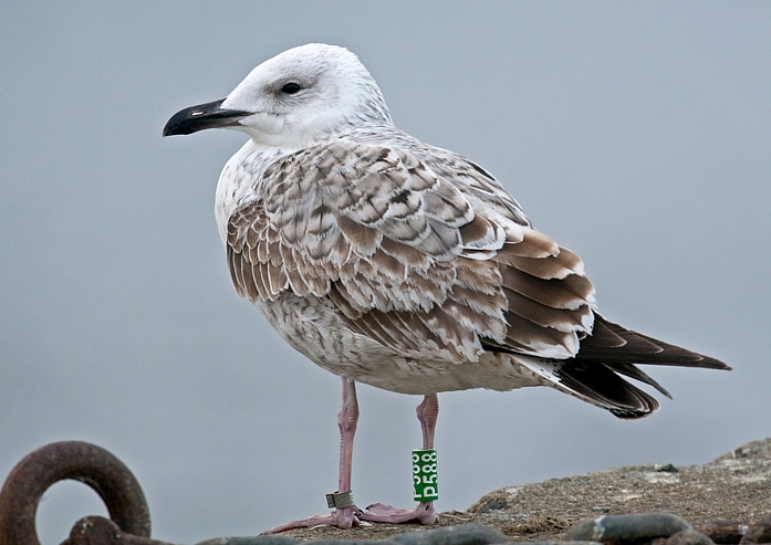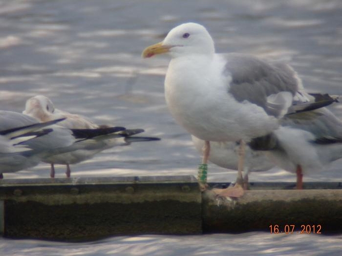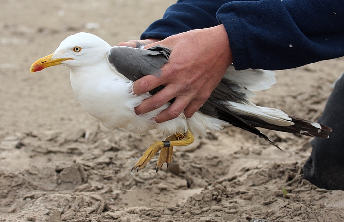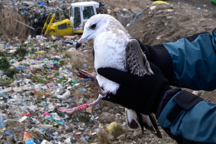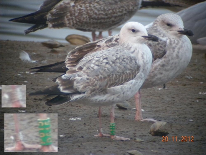 W sezonie 2012 mewy białogłowe były obrączkowane głównie w kolonii znajdującej się na Jeziorze Wytyckim. Ogółem zaobrączkowaliśmy 59 dorosłych "wielkich" mew i 160 młodych. Otrzymaliśmy w sumie 143 wiadomości powrotne, w tym 31 zagranicznych. Ptaki poleciały głównie na zachód, choć kilka ptaków widziano w Szwecji i Włoszech (nawet poniżej Rzymu - 1241 km od kolonii lęgowej).  Mewa białogłowa z Wytyczna, okolice Karlskrony, Szwecja (Foto Fredrik Lennartsson). Najdalej, bo aż pod kanał La Manche we Francji, poleciały dwa młode z Wytyczna, które pokonały 1451 km. Młode ptaki widziano jeszcze w Belgii - 1325 km i Holandii - 1217 km od miejsca obrączkowania. Mewa białogłowa (Larus cachinnans) - mapa wiadomości powrotnych. Niebieski punkt oznacza ptaki obrączkowane w Zastowie Karczmiskim, żółty punkt ptaki z Jeziora Wytyckiego. Pokaż Mewa białogłowa (Larus cachinnans) na większej mapie Sporo ptaków zimuje w zachodniej Polsce i w Niemczech, kilka wiadomości powrotnych otrzymaliśmy też ze Szwecji, Chorwacji, Węgier, Czech i Słowacji.  Pierwsza zima w porcie w Szwecji (foto Joergen Bernsmo). Jeżeli chodzi o Polskę, najwięcej wiadomości pochodzi z Zalewu Witoszówka (woj. dolnośląskie), a także z okolic Poznania i Bydgoszczy. Kilka ptaków widziano też na polskim wybrzeżu Bałtyku. Na Lubelszczyźnie najwięcej mew odczytano na składowiskach odpadów pod Łęczną i Lublinem, na stawach w Siemieniu, w Stoczku koło Czemiernik w dolinie Tyśmienicy, a także nad Wisłą. W 2012 roku zaobrączkowaliśmy ponadto 24 os. mew siwych i uzyskaliśmy 25 wiadomości powrotnych. Mewa siwa (Larus canus) - mapa wiadomości powrotnych. Pokaż Mewa siwa (Larus canus) - wiadomości powrotne na większej mapie W 2012 rozpoczęliśmy liczenia i obrączkowanie mew na składowiskach odpadów. Ptaki gromadzą się od wiosny do późnej jesieni na dwóch wysypiskach - pod Lublinem i koło Łęcznej.  Składowisko pod Łęczną (foto Ł. Bednarz). Nie otrzymalibyśmy tylu wiadomości powrotnych gdyby nie zaangażowanie wielu osób odczytujących i fotografujących mewy - za wszelkie informacje serdecznie dziękujemy ! Zachęcamy do dokładnego przyglądania się mewom, wyszukiwania obrączek i wysyłania informacji za pomocą formularza na stronie http://ring.stornit.gda.pl/ . Wszelkie informacje dotyczące mew na składowiskach odpadów oraz mew gnieżdżących się na Lubelszczyźnie prosimy kierować do koordynatora akcji: Łukasza Bednarza, email, tel. 511092661. Fotonotes 2012 - Projekt kolorowego obrączkowania mew na Lubelszczyźnie.